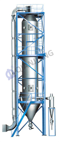 以氣流平均停留時間作為物料干燥時間為基礎,進行干燥時間計算發(fā)現(xiàn),離心噴霧生產(chǎn)能力從5噸/班到100噸/班范圍內(nèi),干燥時間為15.7-31秒,多數(shù)為15-20秒。干燥時間為31秒的干燥塔,經(jīng)熱量和物料衡算,其空氣量應為9000米3/小時,而其給出值為7725米3/小時,故干燥時間偏長,這是不盡合理的。干燥時間為26秒的干燥塔是一個具有二次干燥的引進塔,很可能塔的設計兼顧了一次干燥。按二次干燥計算,干燥時間就偏長。故可將這兩個塔作為例外,則平均干燥時間為17.1秒。