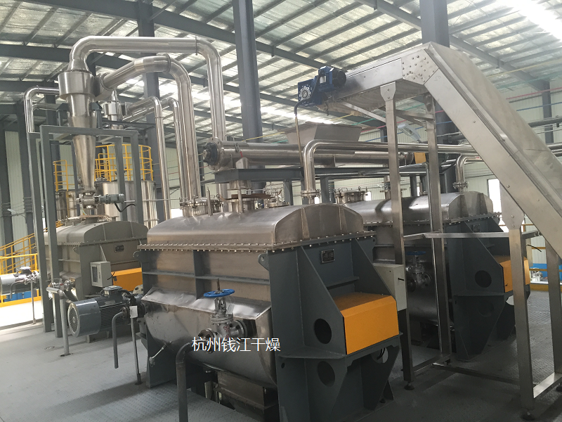 2、該生產(chǎn)線的核心部分:干燥系統(tǒng)。采用分段加熱的方式,預(yù)干燥段采用高壓低風(fēng)量風(fēng)機(jī),使較濕的雞精顆粒能完全流化;干燥段采用低壓高風(fēng)量的風(fēng)機(jī),單位時(shí)間內(nèi)帶走水份多,干燥均勻;冷卻段采用高風(fēng)量風(fēng)機(jī),能迅速帶走熱量,降低產(chǎn)品溫度,既達(dá)到水分控制的要求,又方便后續(xù)包裝工藝。