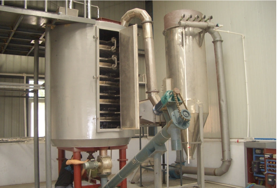 2.動(dòng)力消耗低、噪音小。由于干燥過(guò)程中料層很薄,主軸轉(zhuǎn)速低,物料傳送系統(tǒng)所需的功率小,電耗很少,其全套干燥裝置動(dòng)力消耗僅是對(duì)流方式傳熱裝置動(dòng)力消耗的1/5~1/7,且噪音很小。